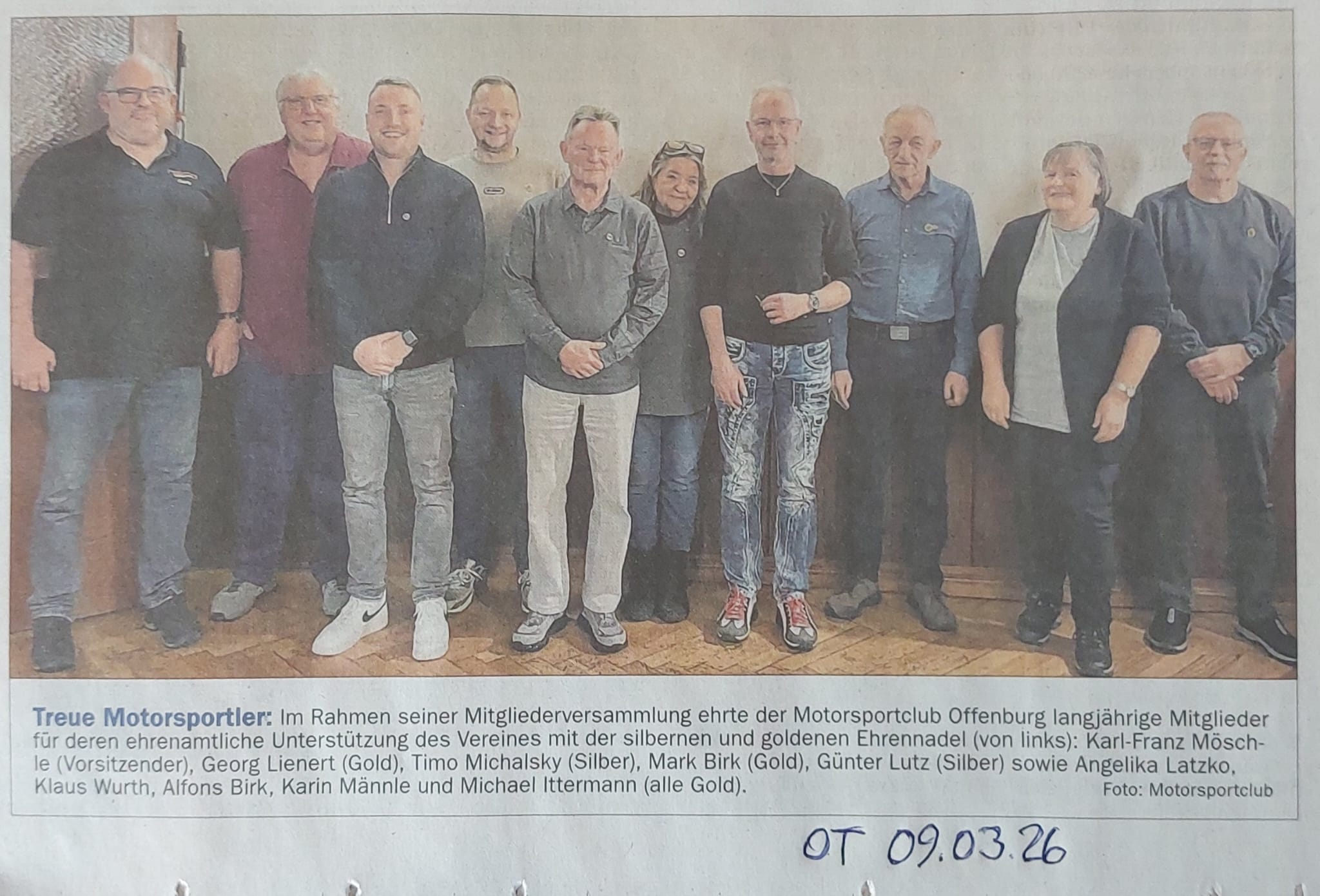 (kfm) Im Rahmen seiner Mitgliederversammlung ehrte der Motorsportclub Offenburg seine langjährige Mitglieder für deren ehrenamtliche Unterstützung des Vereines mit der silbernen bzw. goldenen Ehrennadel.